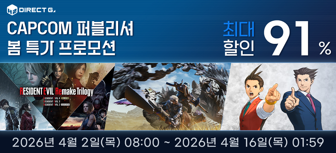 • 내용: <몬스터 헌터 와일즈>, <바이오하자드 리메이크 트릴로지>, <역전재판 123+456 컬렉션> 등 Capcom 퍼블리셔 인기 타이틀 할인 판매